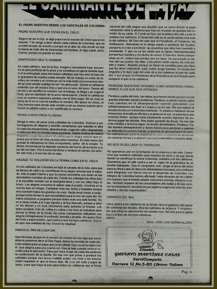 El 19 de julio de 1995 miles de cafeteros de Caldas, Risaralda, Quindío, Huila, Antioquia, Valle y Tolima salimos a participar del Primer Paro Cafetero de carácter nacional que se hace en el país. Siendo antecesor el paro Cafetero del Líbano Tolima realizado del 18 de febrero al 8 de marzo del mismo año.